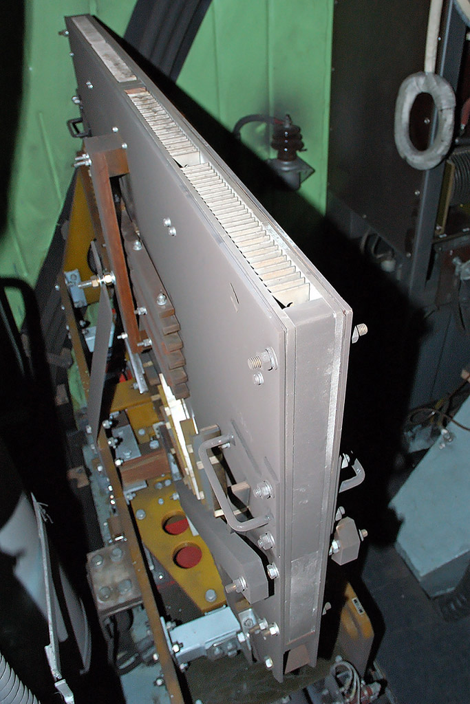 Přívod proudu do lokomotivy zprostředkovává dvojice opačně orientovaných polopantografových sběračů s pneumatickým pohonem.